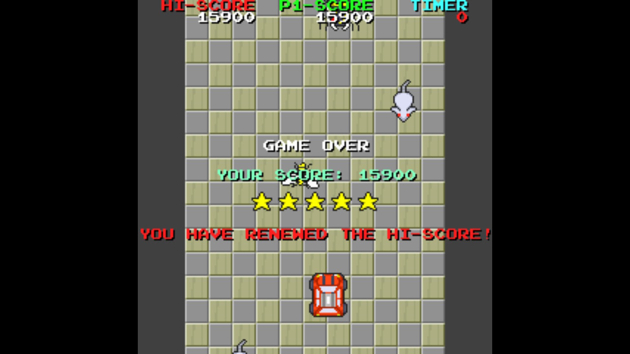 90秒のスコアアタックゲーム。で車を左右に動かして邪魔物にぶつけて道路の外に落とせば得点。